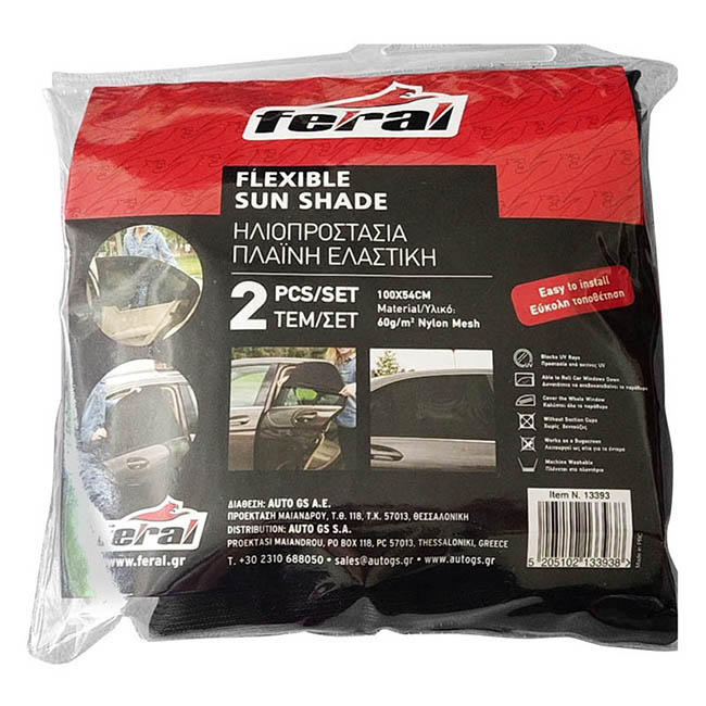Ηλιοπροστασίες Αυτοκινήτου Feral Για Τα Πλαϊνά Τζάμια Ελαστική (Flexible) Sunshade 100x54cm 2 Τεμάχια