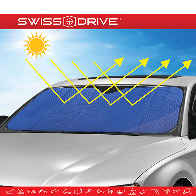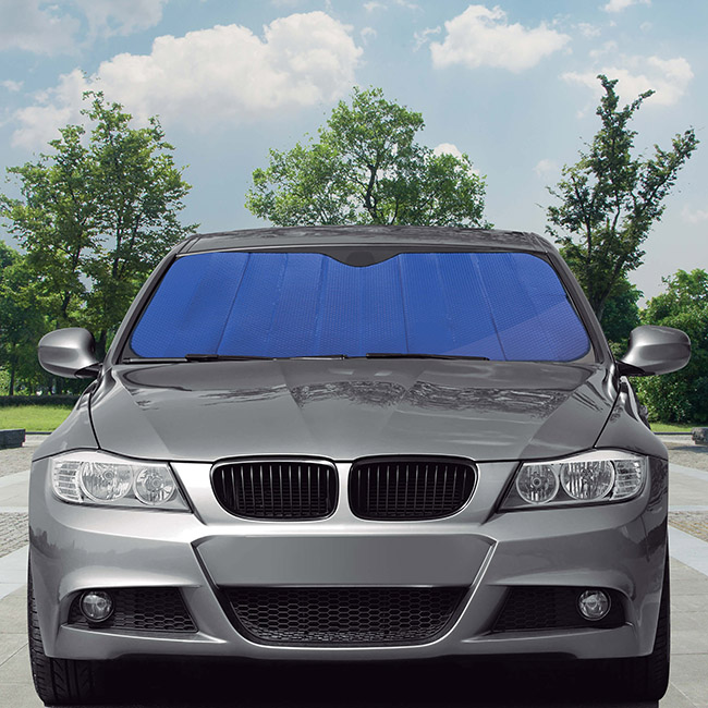 Εσωτερικό σκίαστρο παρμπρίζ από ειδικό ύφασμα αντοχής σε όλες τις καιρικές συνθήκες, για προστασία του αυτοκινήτου σας από την υπεριώδη ακτινοβολία του ήλιου που φθείρει το ταμπλό και όλα τα πλαστικά μέρη, τις υψηλές θερμοκρασίες στο εσωτερικού του αυτοκινήτου, τη βροχή και τη σκόνη.