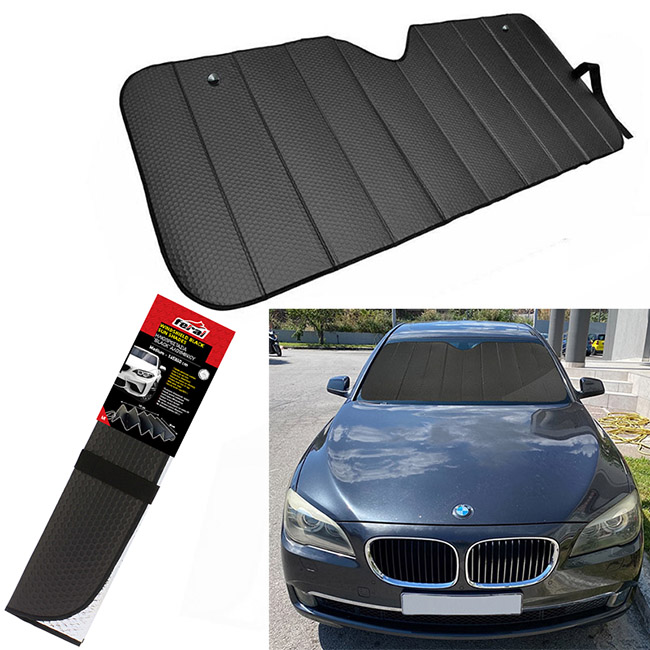 Εσωτερικό σκίαστρο παρμπρίζ από ειδικό ύφασμα αντοχής σε όλες τις καιρικές συνθήκες, για προστασία του αυτοκινήτου σας από την υπεριώδη ακτινοβολία του ήλιου που φθείρει το ταμπλό και όλα τα πλαστικά μέρη, τις υψηλές θερμοκρασίες στο εσωτερικού του αυτοκινήτου, τη βροχή και τη σκόνη.
