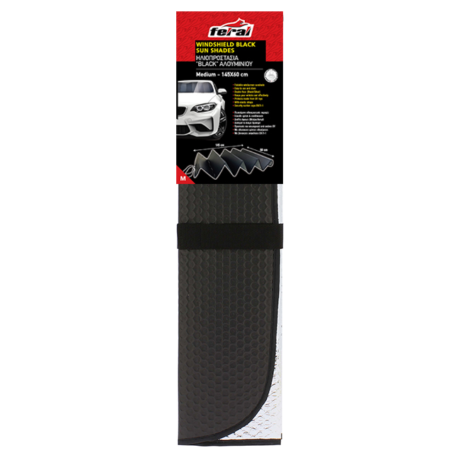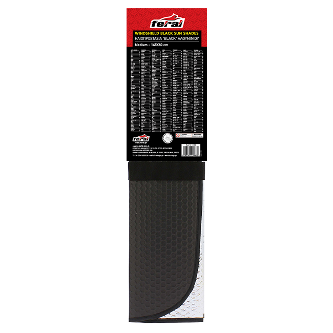 Ηλιοπροστασία Παρμπρίζ Αλουμινίου ''Black'' Feral Μαύρο Matte Medium 145x60cm 1 Τεμάχιο