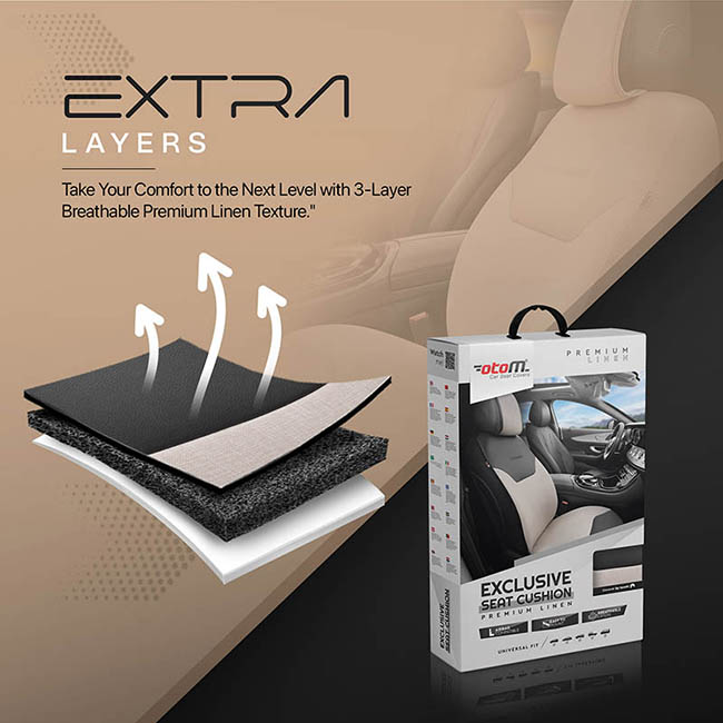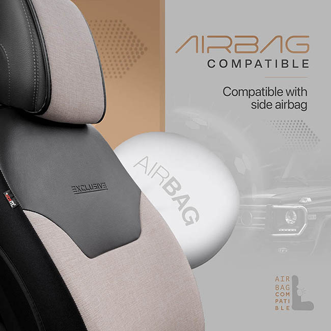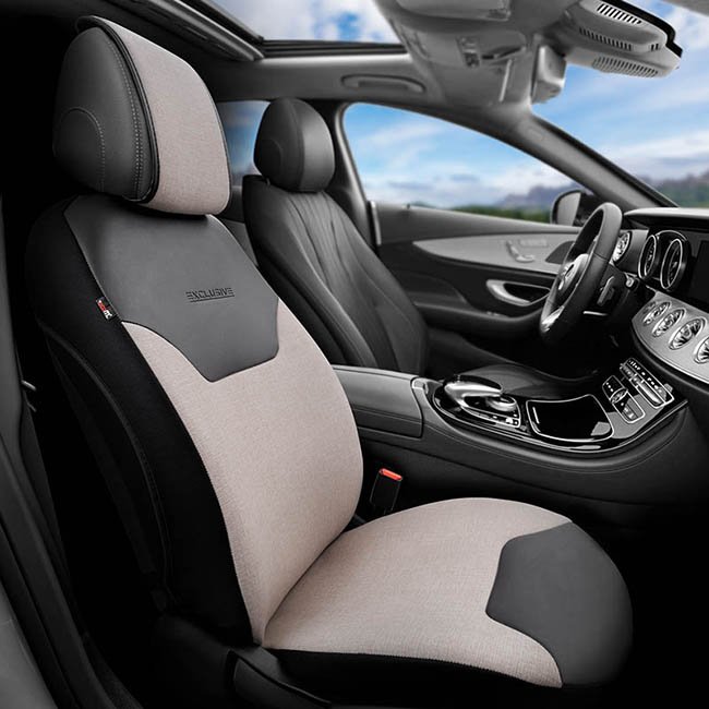 Ημικάλυμμα Αυτοκινήτου Otom "Exclusive" Από Λινό Ύφασμα Με Δερματίνη Μπεζ - Μαύρο EXLN-103 1 Τεμάχιο
