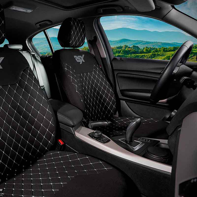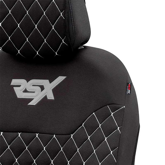 Ημικαλύμματα αυτοκινήτου για τα δύο μπροστινά καθίσματα RSX Sport από υψηλής ποιότητας ύφασμα κεντητό καπιτονέ.