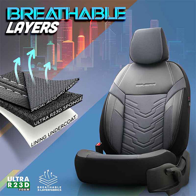 Καλύμματα Αυτοκινήτου Otom Reflective Design Universal Jacquard / Rachel / Δερματίνη Σετ Εμπρός / Πίσω Μαύρο - Σκούρο Γκρι RFL-2603 11 Τεμάχια