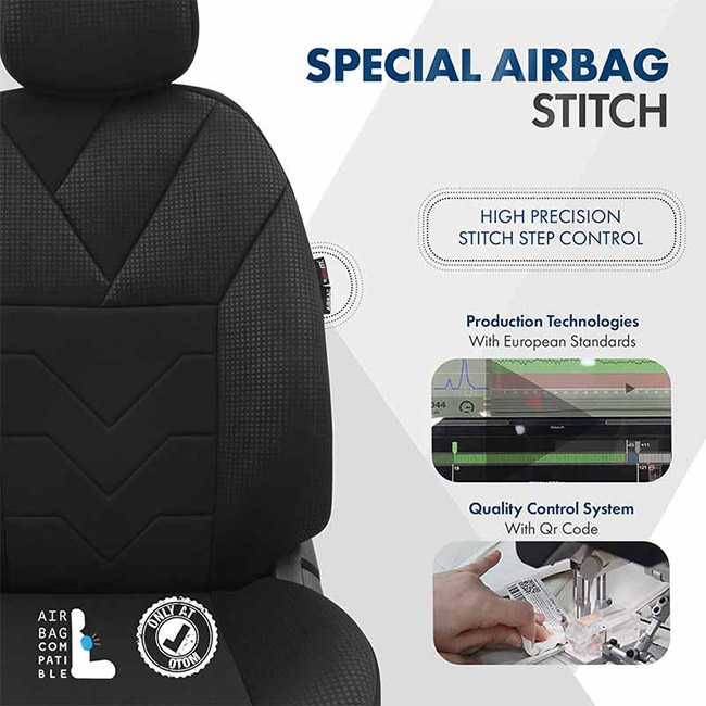 Special Airbag Stitch: Κατάλληλα για καθίσματα εξοπλισμένα με πλευρικούς αερόσακους, καθώς ακολουθούν τα ευρωπαϊκά στάνταρ, για πιο ασφαλή οδήγηση.