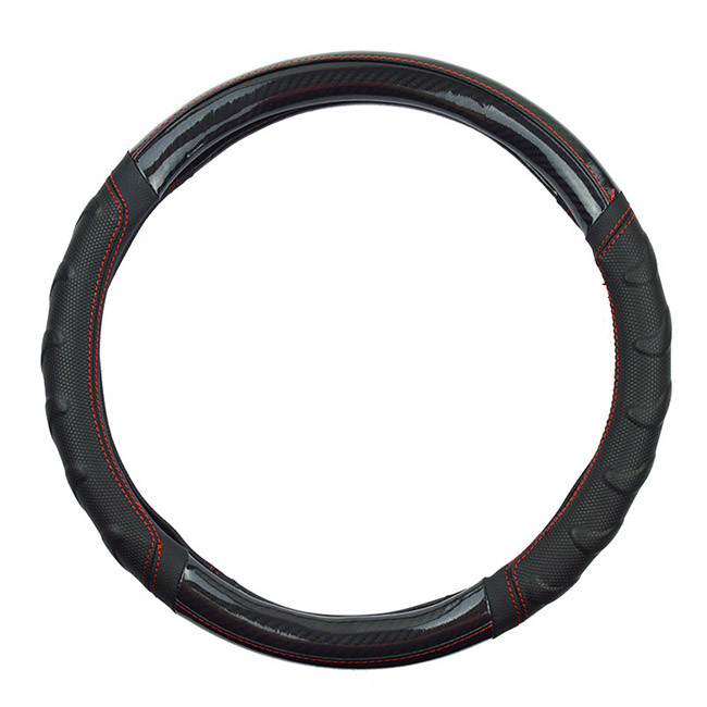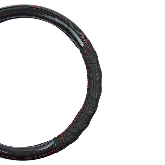 Κάλυμμα Τιμονιού Αυτοκινήτου Δερματίνη Speed Μαύρο-Carbon Με Κόκκινη Ραφή Medium 38cm 1 Τεμάχιο