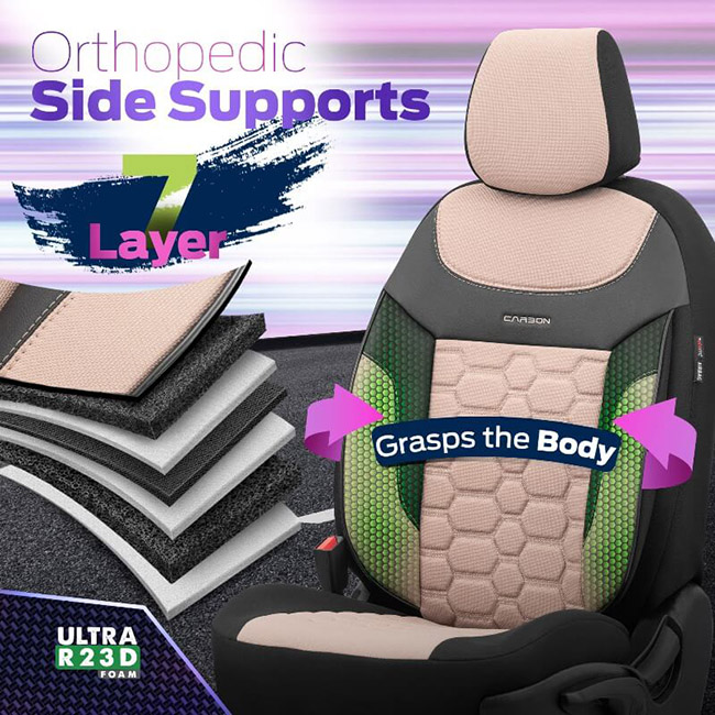 Καλύμματα Αυτοκινήτου Otom Carbon Design Universal Jacquard / Rachel / Δερματίνη Σετ Εμπρός / Πίσω Μπεζ CRB-3403 11 Τεμάχια