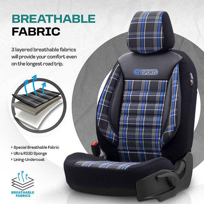 Καλύμματα Αυτοκινήτου Otom GTI Sports Design Universal Jacquard / Lacost / Δερματίνη Σετ Εμπρός / Πίσω Μαύρο - Μπλε GTI-804 11 Τεμάχια