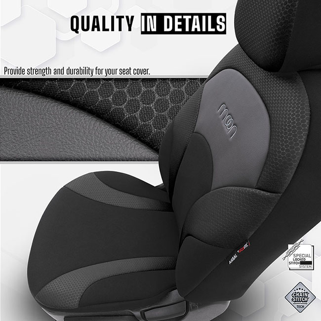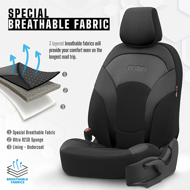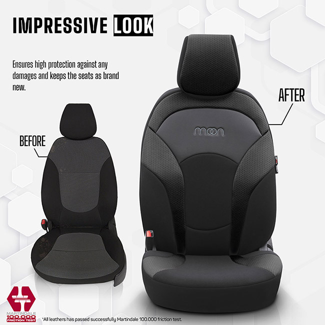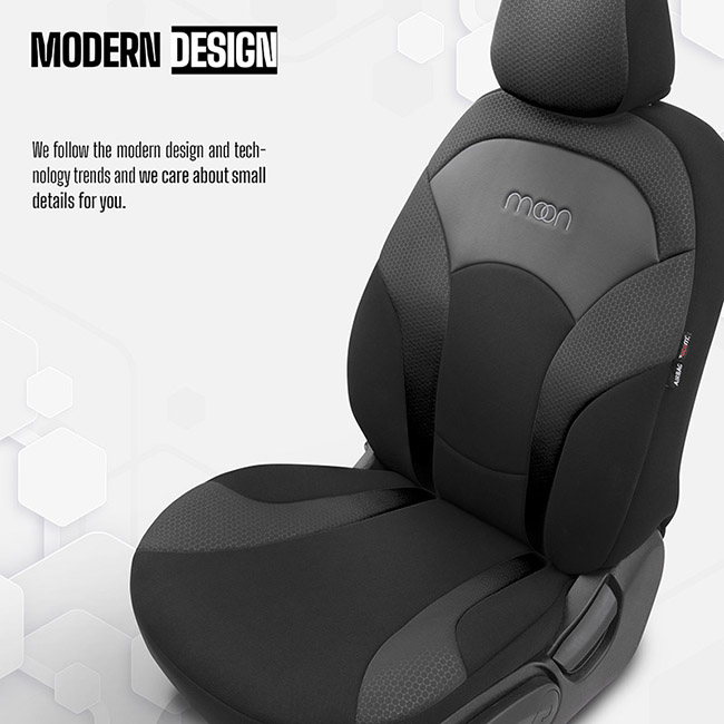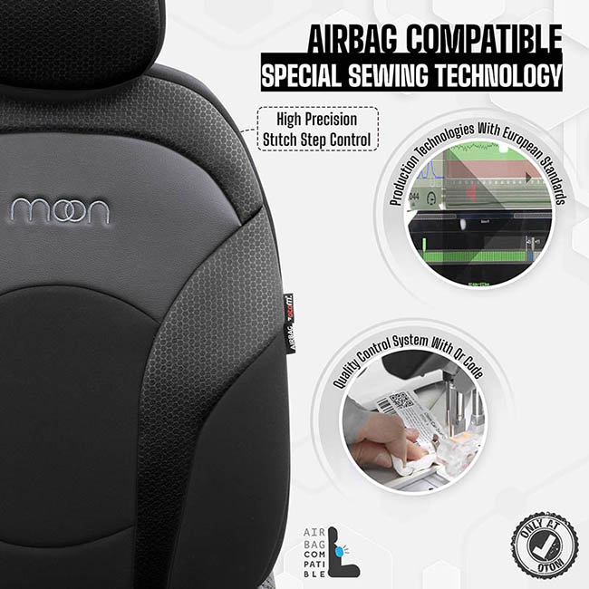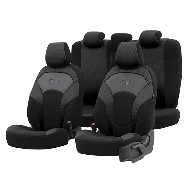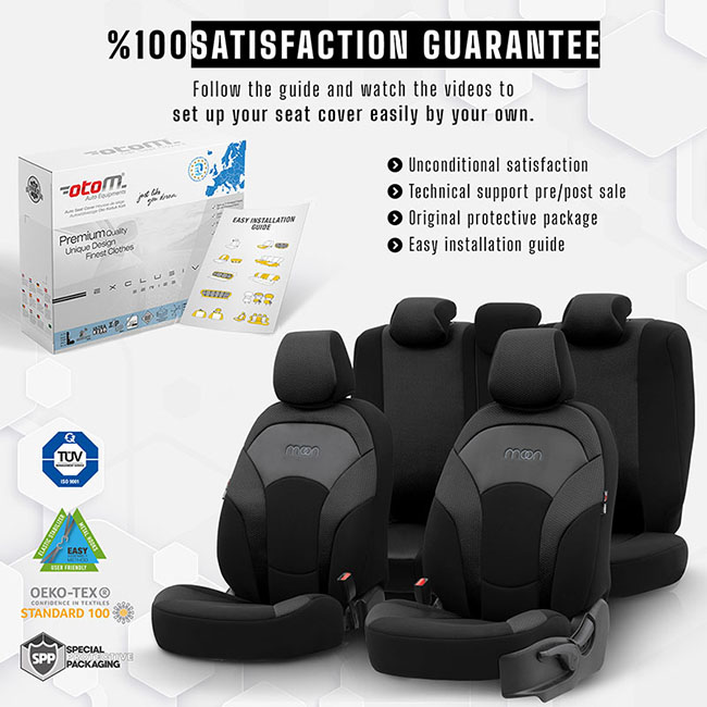 Καλύμματα Αυτοκινήτου Otom Moon Design Universal Βαμβακερό Ύφασμα / Rachel / Δερματίνη Σετ Εμπρός / Πίσω Μαύρο MON-1901 11 Τεμαχίων