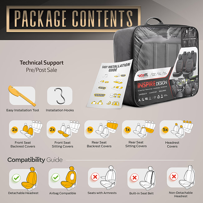 Καλύμματα Αυτοκινήτου Otom Inspire Design Universal Full Δερματίνη Σετ Εμπρός / Πίσω Μαύρο INS-3501 11 Τεμάχια