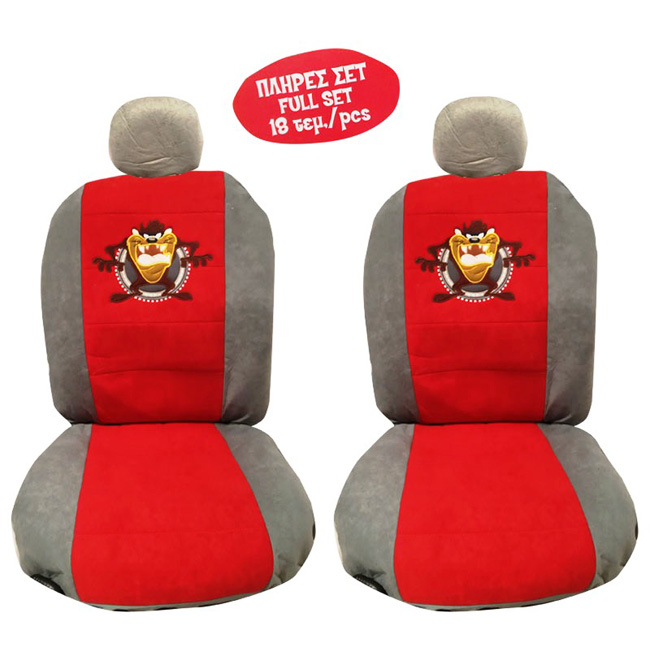Ήρθαν τα νέα καλύμματα με τον ακαταμάχητο Ταζ. Προστατεύουν τα καθίσματα σας από φθορές , λεκέδες και γρατζουνιές. Η κατασκευή τους είναι από υψηλής ποιότητας ανθεκτικό βελουτέ ύφασμα. Διαθέτουν ενισχυμένο φερμουάρ για να προσαρμόζονται στα πίσω καθίσματα. Είναι κατάλληλα για όλους τους τύπους αυτοκινήτου, καθώς και για τα οχήματα με πλευρικούς αερόσακους. Θα σας χαρίσουν άνετη οδήγηση και θα αλλάξουν την όψη στο εσωτερικό του οχήματος σας.