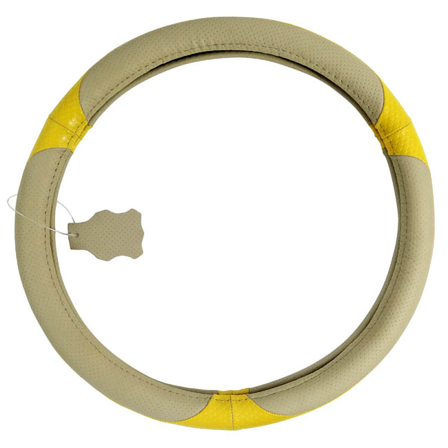 Κάλυμμα Τιμονιού Αυτοκινήτου Δερμάτινο Μπεζ-Κίτρινο Medium 38cm 1 Τεμάχιο