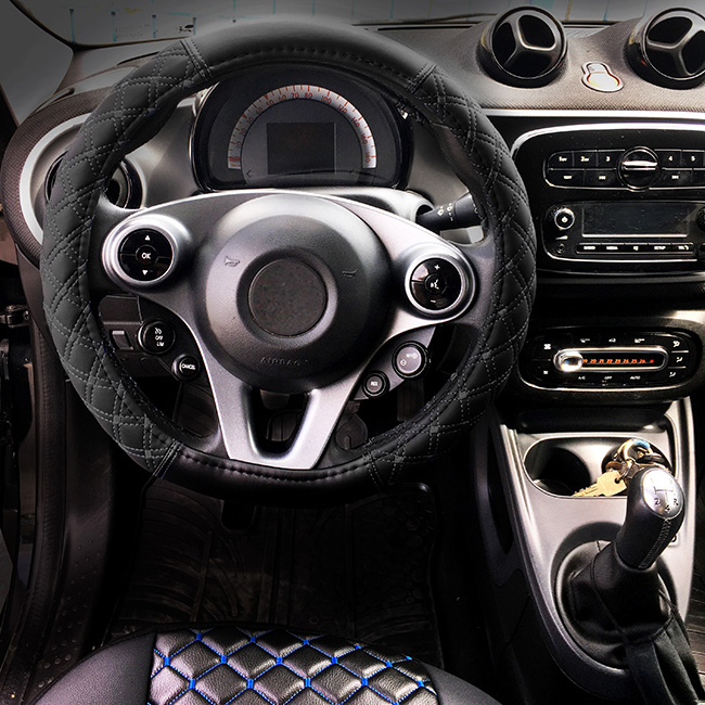 Κάλυμμα Τιμονιού Αυτοκινήτου Δερματίνη Elegant D Μαύρο Με Μαύρη Ραφή Medium 38cm 1 Τεμάχιο