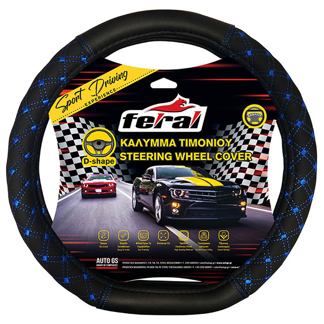Κάλυμμα Τιμονιού Αυτοκινήτου Δερματίνη Elegant D Μαύρο Με Μπλε Ραφή Medium 38cm 1 Τεμάχιο
