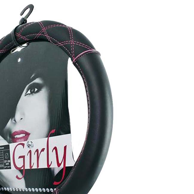 Κάλυμμα Tιμονιού Αυτοκινήτου Δερματίνη Girly Pink Cross Stitch Μαύρο Με Ροζ Σταυρωτό Νήμα Medium 37-39cm 1 Τεμάχιο