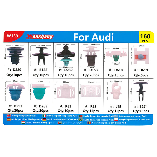 Κουμπώματα Ταπετσαρίας Αυτοκινήτου Για Audi (12 Διαφορετικά Σχέδια) 160 Τεμάχια