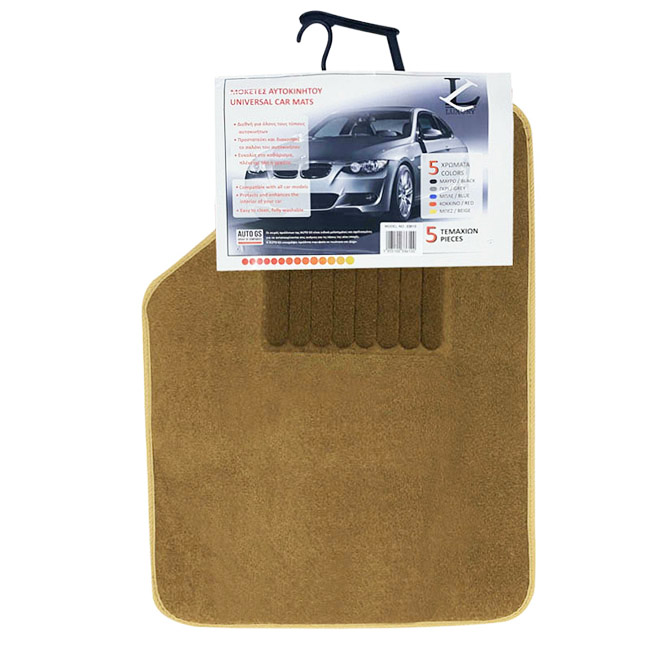 Οι Μοκέτες για το αυτοκίνητο είναι κατασκευασμένες από υλικό συνθετικού τάπητα με απαλό πέλος, το οποίο είναι άοσμο και φιλικό προς το περιβάλλον. Προσδίδουν μία αίσθηση πολυτέλειας και άνεσης στο εσωτερικό του αυτοκινήτου σας. Διατίθενται σε μαύρο, γκρι, μπεζ, μπλε και κόκκινο χρώμα και ανάλογα με το όχημα είναι ζευγάρι ή σετ των 4 ή 5 τεμαχίων.