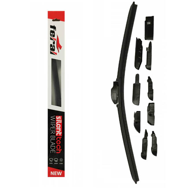 Οι υαλοκαθαριστήρες Feral Silent Tech είναι 100 % αθόρυβοι, με επίστρωση Teflon στο λάστιχο. Έχουν εύκολη τοποθέτηση & αεροδυναμικό σχεδιασμό καλύπτοντας το 99 % των αυτοκινήτων χάρη στους 10 αντάπτορες – για όλα τα μπράτσα, που περιέχονται μέσα στη συσκευασία.. Ο αεροδυναμικός τους σχεδιασμός αποτρέπει τη δημιουργία κενών και έχουν απόλυτη εφαρμογή στο παρμπρίζ. Έχουν μεγάλη ανθεκτικότητα στη UV ακτινοβολία & έτσι δεν ξεθωριάζουν στον ήλιο.