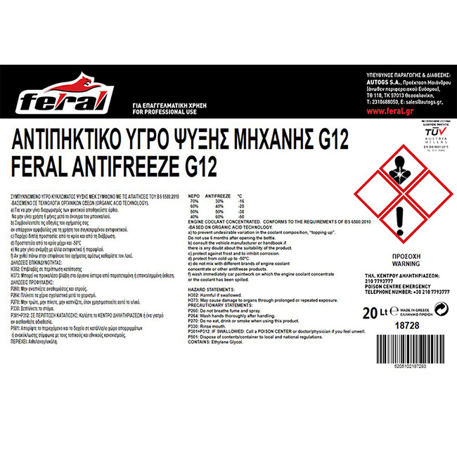 Αντιψυκτικό G12 Feral 20lt 1 Τεμάχιο Αντιψυκτικό G12 Feral 20lt 1 Τεμάχιο