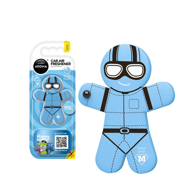 Τα Αρώματα Manny περιέχουν υψηλής ποιότητας αρώματα. Τα αρώματα απελευθερώνονται σταδιακά κατά τη διαδικασία της εξατμίσεως. Τοποθετούνται είτε στον αεραγωγό του αυτοκινήτου, είτε μπορείτε να τα κρεμάσετε τόσο στο μπρελόκ σας, όσο και στον καθρέπτη του αυτοκινήτου και ανανεώνουν αποτελεσματικά τη μυρωδιά στο εσωτερικό του οχήματος. Διατίθεται σε συσκευασία των 8gr και σε αρώματα: black, new car, fresh linen, bubble – gum, lemon, sport fresh, cherry και vanilla, με διαφορετικό σχέδιο σε κάθε άρωμα.