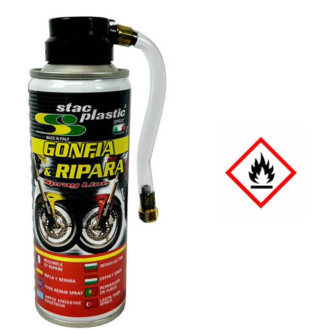 Κόλλα για ελαστικά ψεκασμού της μάρκας Stac Plastic. Η κόλλα έχει σχεδιαστεί για επισκευή έκτακτης ανάγκης και φούσκωμα ενός σκασμένου ελαστικού χωρίς την ανάγκη αποσυναρμολόγησης. Είναι κατάλληλο για κάθε τύπο ελαστικού - με ή χωρίς εσωτερικό σωλήνα. Λειτουργεί βαθιά μέσα στο λάστιχο, σχηματίζοντας μια ειδική μεμβράνη, σφραγίζοντας το, γεγονός που εξασφαλίζει αποτελεσματική επισκευή.