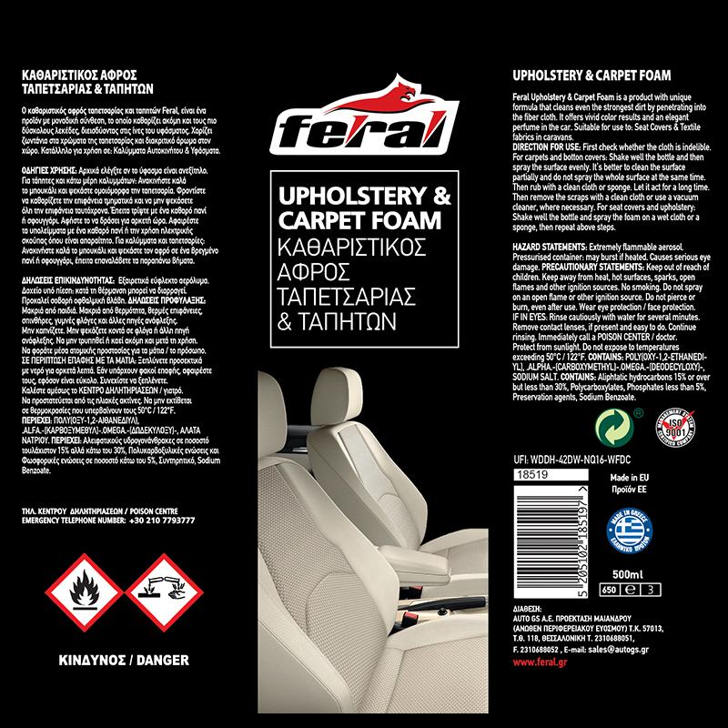 Καθαριστικός Αφρός Ταπετσαρίας Feral 500ML