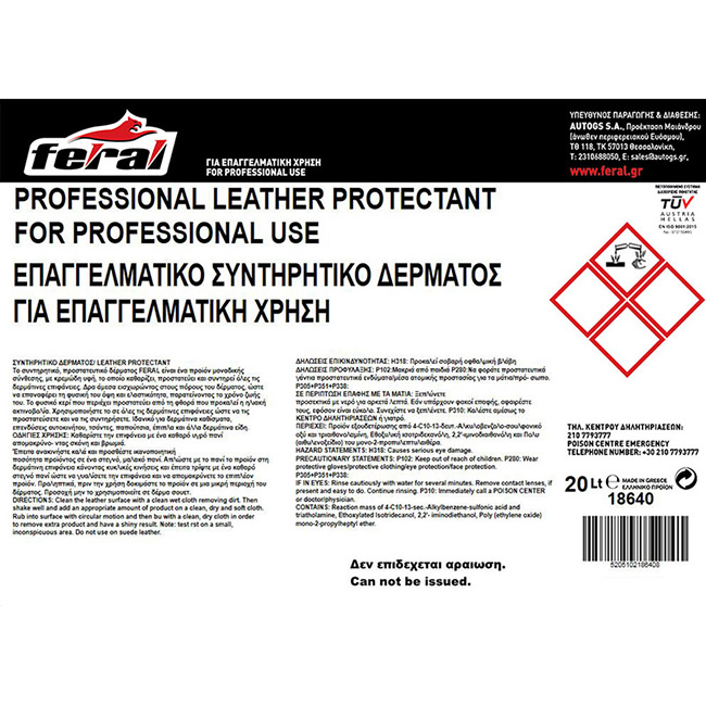 Το γαλάκτωμα δέρματος FERAL είναι ένα προϊόν μοναδικής σύνθεσης, με κρεμώδη υφή, το οποίο καθαρίζει, προστατεύει και συντηρεί όλες τις δερμάτινες επιφάνειες. Δρα άμεσα εισχωρώντας στους πόρους του δέρματος, ώστε να επαναφέρει τη φυσική του όψη και ελαστικότητα, παρατείνοντας το χρόνο ζωής του. Το φυσικό κερί που περιέχει, προστατεύει από τη φθορά που προκαλεί η ηλιακή ακτινοβολία.