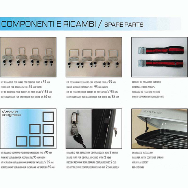 Είναι σχεδιασμένες με εξαιρετικές προδιαγραφές, δοκιμασμένες και κατασκευασμένες εξ ολοκλήρου στην Ιταλία και έχουν έγκριση σύμφωνα με τα διεθνή πρότυπα. Διακρίνονται για την ποιότητα, το σχεδιασμό και την ασφάλειά τους. Παρέχονται πλήρως συναρμολογημένες και τοποθετούνται εύκολα και γρήγορα χωρίς τη χρήση εργαλείων πάνω στις μπάρες, μέσω ενός kit το οποίο καλύπτει κάθε τύπο οχήματος (αυτοκίνητο, SUV, van ή τροχόσπιτο). Οι μπαγαζιέρες οροφής Free έχουν σύστημα κλειδώματος 2 σημείων και ανοίγματος μέσω μεταλλικών πυξίδων με δράση ελατηρίου διπλής αντίθεσης. Αποτελούν έναν από τους πιο ασφαλείς τρόπους για τη μεταφορά των αποσκευών. Χάρη στον αεροδυναμικό τους σχεδιασμό, μετά την τοποθέτηση δεν θα δημιουργηθεί κανενός είδους θόρυβος ή ανατάραξη και δεν θα αλλάξει πολύ η κατανάλωση του καυσίμου του αυτοκινήτου σας. Έχουν υλικό ABS + PMMA, αντιθαμβωτική και anti-scratch UV προστασία. Διαθέτουν μεταλλικούς μεντεσέδες στο εσωτερικό, οι οποίοι βοηθούν στη συγκράτηση των αντικειμένων κατά τη σύγκρουση.
