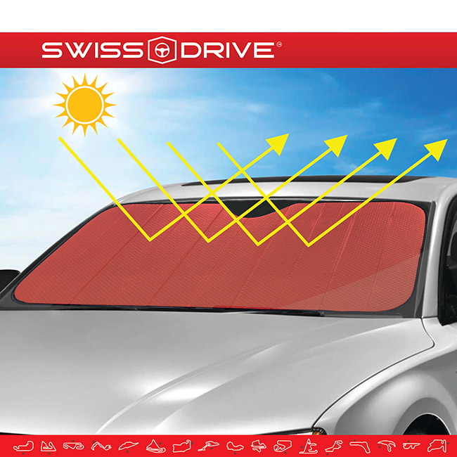 Εσωτερικό σκίαστρο παρμπρίζ από ειδικό ύφασμα αντοχής σε όλες τις καιρικές συνθήκες, για προστασία του αυτοκινήτου σας από την υπεριώδη ακτινοβολία του ήλιου που φθείρει το ταμπλό και όλα τα πλαστικά μέρη, τις υψηλές θερμοκρασίες στο εσωτερικού του αυτοκινήτου, τη βροχή και τη σκόνη.
