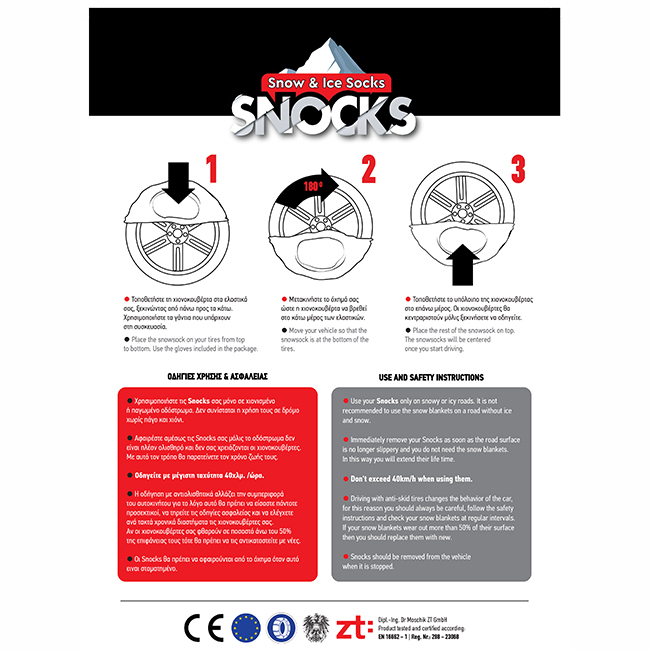 - Το Snocks πρέπει να τοποθετείται στους τροχούς κίνησης