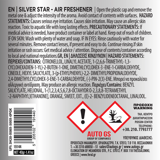 Αρωματικό Αυτοκινήτου Κονσέρβα Feral Με Άρωμα Silver Star 40gr 1 Τεμάχιο