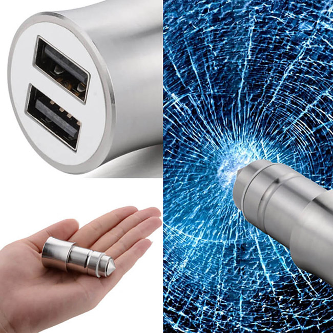 Ο Φορτιστής Αναπτήρα Αυτοκινήτου Με 2 USB είναι 100% κατασκευασμένος από κράμα αλουμινίου και με ειδική ανθεκτική μύτη ειδική για να μπορεί να σπάσει και τζάμι