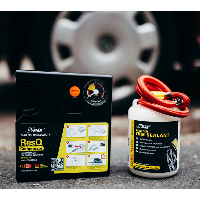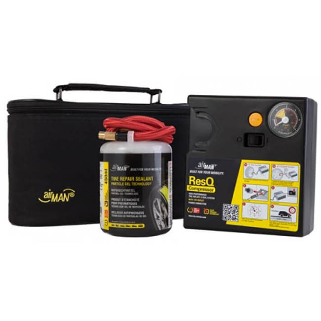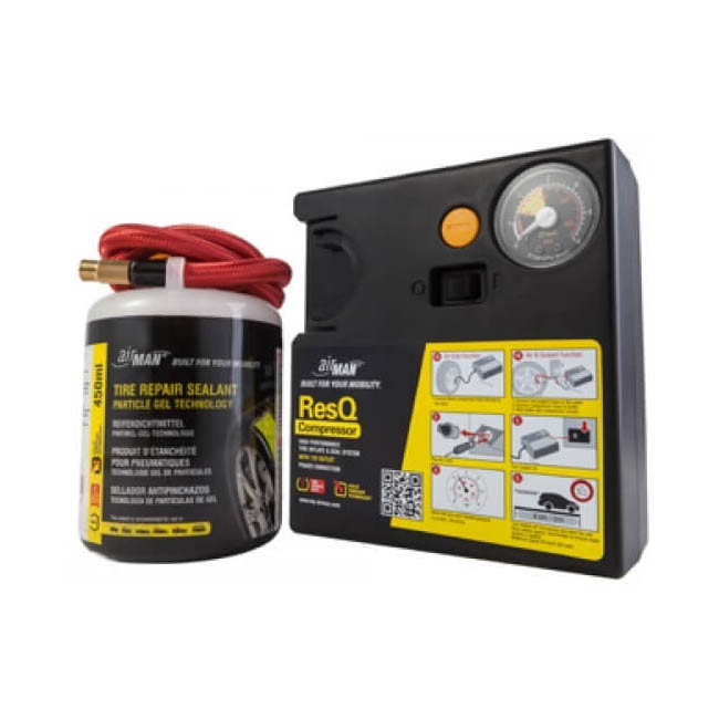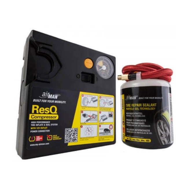 Το ακαταμάχητο Κομφλέρ AirMan ResQ είναι κατασκευασμένο από υλικό φιλικό προς το περιβάλλον με βάση το νερό και τις μικροΐνες. Αποτελεί την εύκολη λύση εάν θέλετε να επισκευάσετε γρήγορα το σκασμένο σας λάστιχο. Καλύπτει όλα τα αυτοκίνητα, καθώς επίσης: φορτηγάκια, suv και μηχανές.