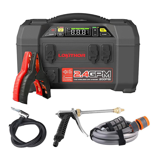 Η LOKITHOR είναι μια μάρκα φορητών λύσεων παροχής ενέργειας έκτακτης ανάγκης που σχεδιάστηκε και κατασκευάστηκε από την GREPOW Battery Company, προτοπορεί για ακόμη μία φορά κατασκευάζοντας τον πρώτο εκκινητή μπαταριών αυτοκινήτου με ενσωματομένο πλυστικό - πιεστικό μηχάνημα , κομπρεσσέρ αέρος, φως LED όπως καθώς και λειτουργία power bank & DC out. Με χωρητικότητα 74Wh, 25000mAh, απόδοση peak 2500A, Διατηρούμε την εστίασή μας στην παροχή βολικών λύσεων για έκτακτες ανάγκες αυτοκινήτων και το LOKITHOR AW401 είναι το πλέον αξιόπιστο booster - πλυστικό - powerbank - κομπρεσσέρ αέρος - φακός όλα σε μία συσκευή.