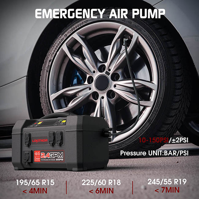 Εκκινητής Μπαταριών Με Ενσωματωμένο Ασύρματο Πιεστικό Νερού 1.5 MPA, Powerbank, Κομπρεσσέρ Αέρος 150PSI, Φακός Led 5 Σε1 Lokithor AW401 12 Volt 2500A 1 Τεμάχιο