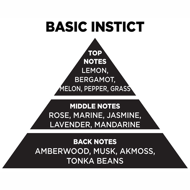 Οι νότες κορυφής είναι το λεμόνι, το περγαμόντο, το πεπόνι και το πιπέρι, ενώ οι μεσαίες νότες είναι το γιασεμί, τριαντάφυλλο, λεβάντα και μανταρίνι.