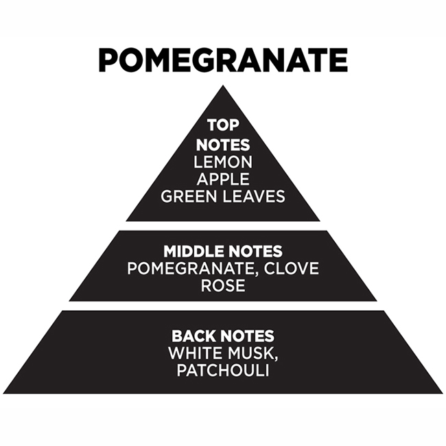 Οι νότες κορυφής είναι λεμόνι, πράσινο μήλο και πράσινα φύλλα τσαγιού, ενώ οι μεσαίες νότες είναι το ρόδι και το τριαντάφυλλο.