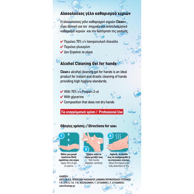 Το αλκοολούχο gel Clean+ By Feral 1lt είναι κατάλληλο για το στιγμιαίο και αποτελεσματικό καθαρισμό των χεριών και τη διατήρηση της υγιεινής.