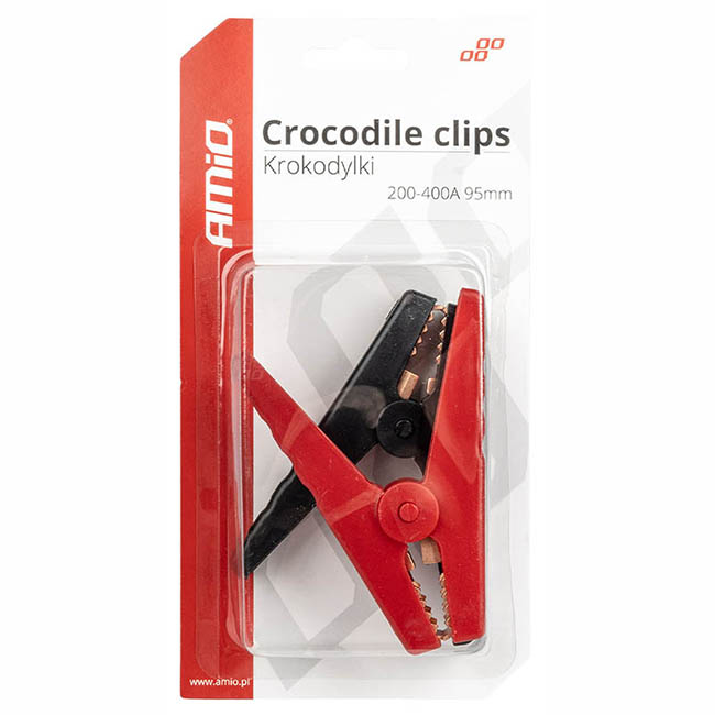 Ακροδέκτες Κροκοδειλάκια Καλωδίων 200-400A 95mm 03525 Amio Μαύρο - Κόκκινο 2 Τεμάχια