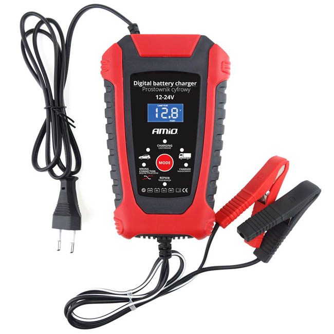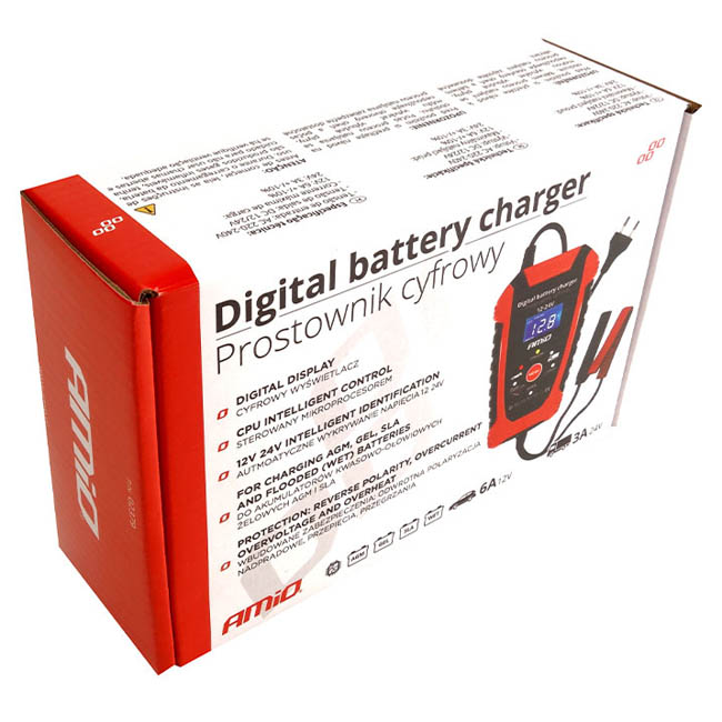 Φορτιστής Μπαταριών Αυτοκινήτου & Φορτηγού Ψηφιακός Amio (02379) 1V 6Amp / 24V 3 Amp 1 Τεμάχιο