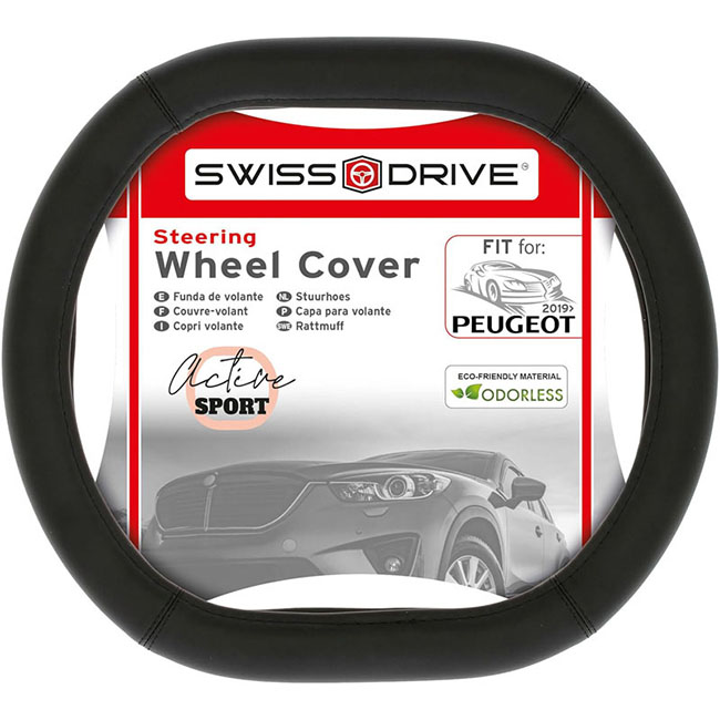 Κάλυμμα Τιμονιού Αυτοκινήτου Δερματίνη Ασύμμετρο Double D Swiss Drive Λείο Κατάλληλο για Μοντέλα Peugeot 2019+ Μαύρο Small-Medium 37-39cm 1 Τεμάχιο